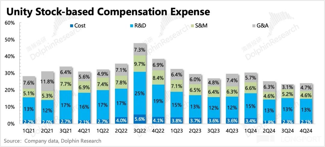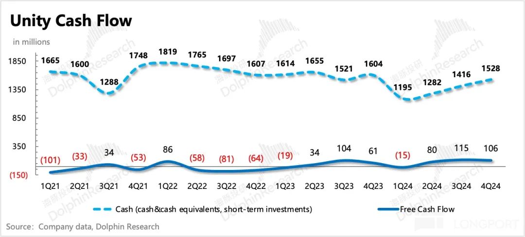 在三项费用中,下降速度都在加快,其中管理费用收缩最为明显。新闻方面,最近 Unity 开启了新一轮员工晋升,这里可能不是因为业务剥离,而是因为业务剥离。 AI 内部降低成本有关。