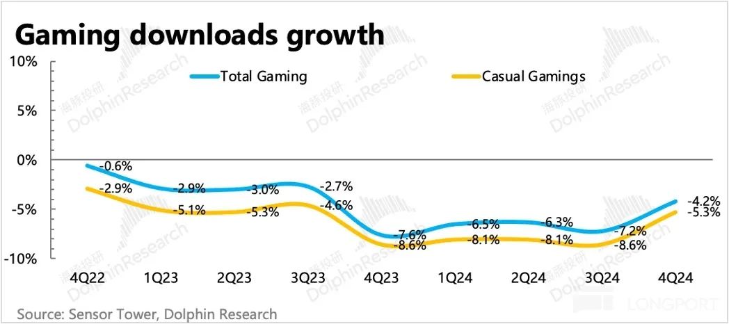 从 Sensor Tower 数据显示,四季度全球游戏下载量下降速度有所放缓,内购收入增速略有下降,但仍相当稳定。Unity 尽管恢复缓慢,但是与同行相比 Applovin 广告收入同比增长 73.5%(去除里边约 5000-1 非游戏增量,如亿美元电商,增长率也是如此。 显然,60%),Unity ads 仍然失去了市场份额。
