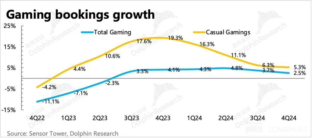 尽管 Unity 增长与估值的看点主要集中在非游戏产业场景上,但游戏产业的收益仍然占总引擎订阅收入的绝大部分, Grow 商业上的主要广告收入,所以海豚君一般也会看游戏行业的情况。