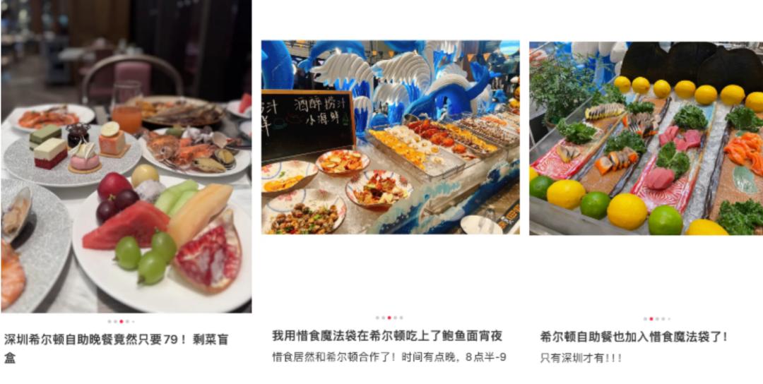 包括深圳龙华希尔顿,还有晚上8:30-9:30推出的“剩菜盲盒”。五星级酒店自助餐原价超过200元,现在只有79元,被网友戏称为“穷鬼美饭”。
