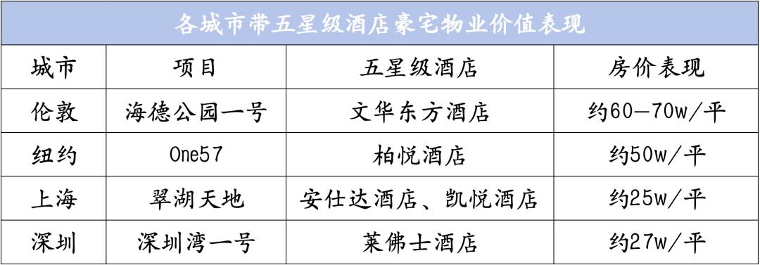 更有甚者,拥有一家五星级酒店也可以提升地块能级协助去化,即使是现在看来,五星级酒店也是全球豪宅所必需的。