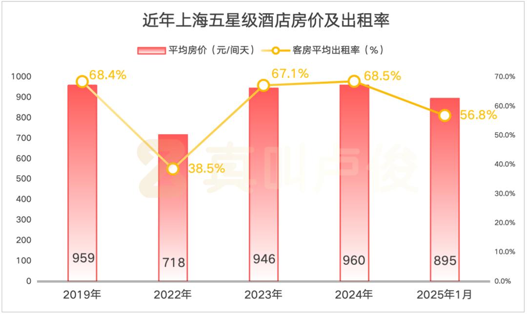 即使是一线上海,2024年1-12月五星级酒店租金率为68.5%,平均房价为960元/间天,也要花近三年的时间才能恢复到2019年的水平。