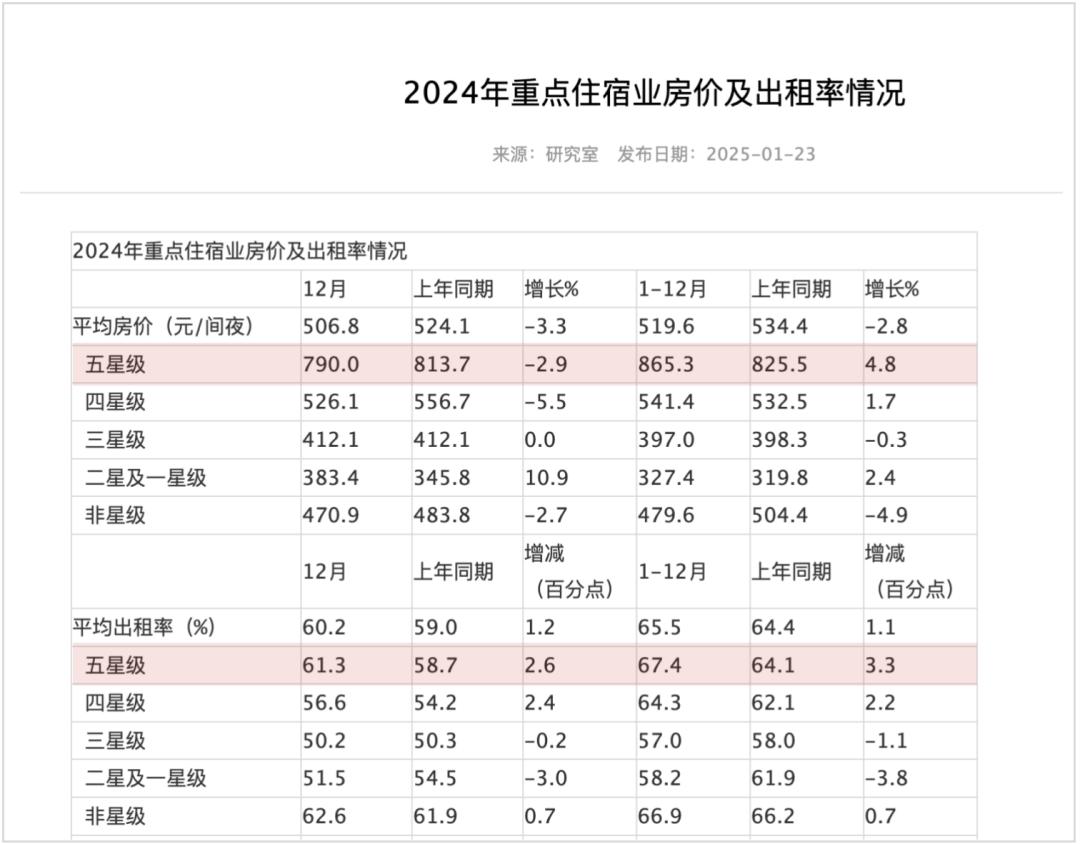 根据文化和旅游部的数据,2024年第三季度,五星级酒店平均价格为599元,同比下降5%,平均租金率同比下降4%。