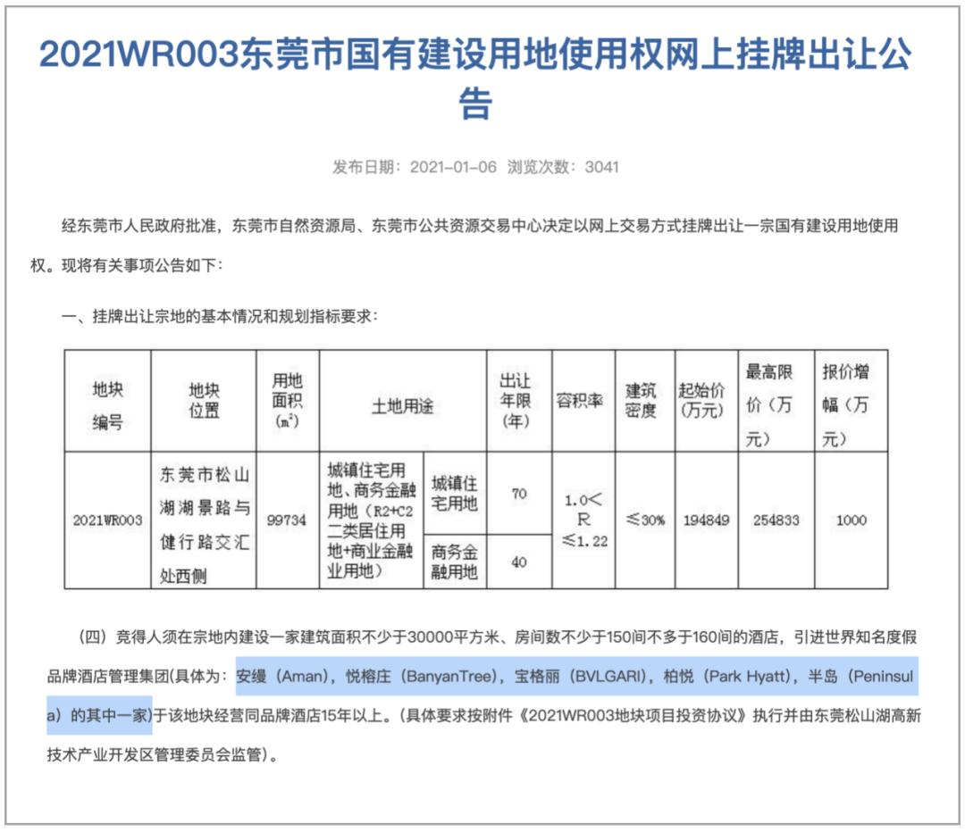 明确规定,世界知名度假品牌酒店管理集团将在宗地内引入。“具体来说,(Aman),悦榕庄(BanyanTree),宝格丽(BVLGARI),柏悦(Park Hyatt),半岛(Peninsula)其中一个”