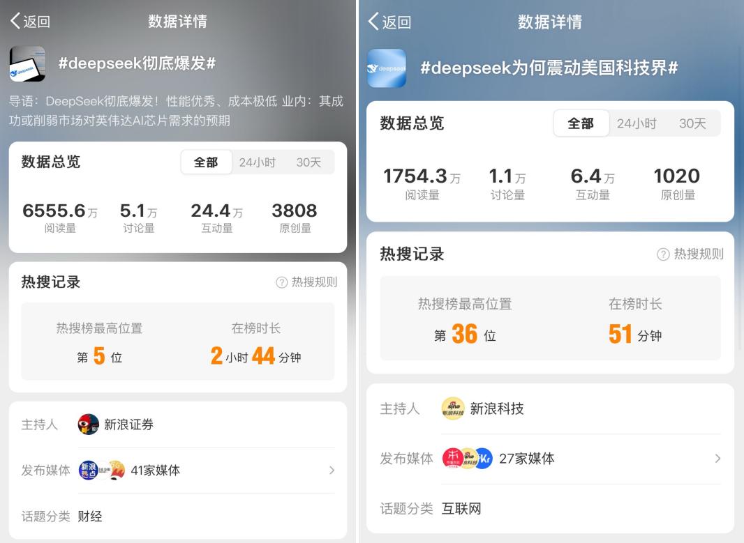 再一次回顾DeepSeek的“爆红”历程,我们可以发现,微博是“热点营销”的重要阵地。