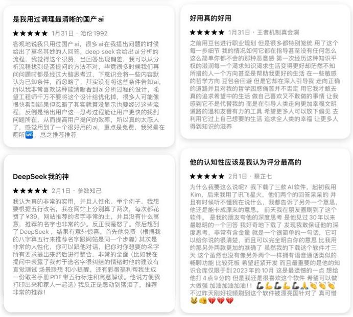 我们先来看看用户对DeepSeek的评价,然后再回答这个问题:
