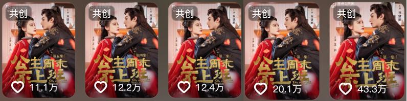 上线两个小时后,抖音#公主周末不上班的话题超过175W。根据新榜单的数据,该剧第一集上线两天互动量突破15W,赞数超过11人,随后四集赞数也超过10万。