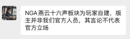 虽然官方客服澄清NGA《燕云十六声》板块是玩家自己建的,版主不是官方工作人员,演讲也不代表官方立场,但舆论已经难以控制。