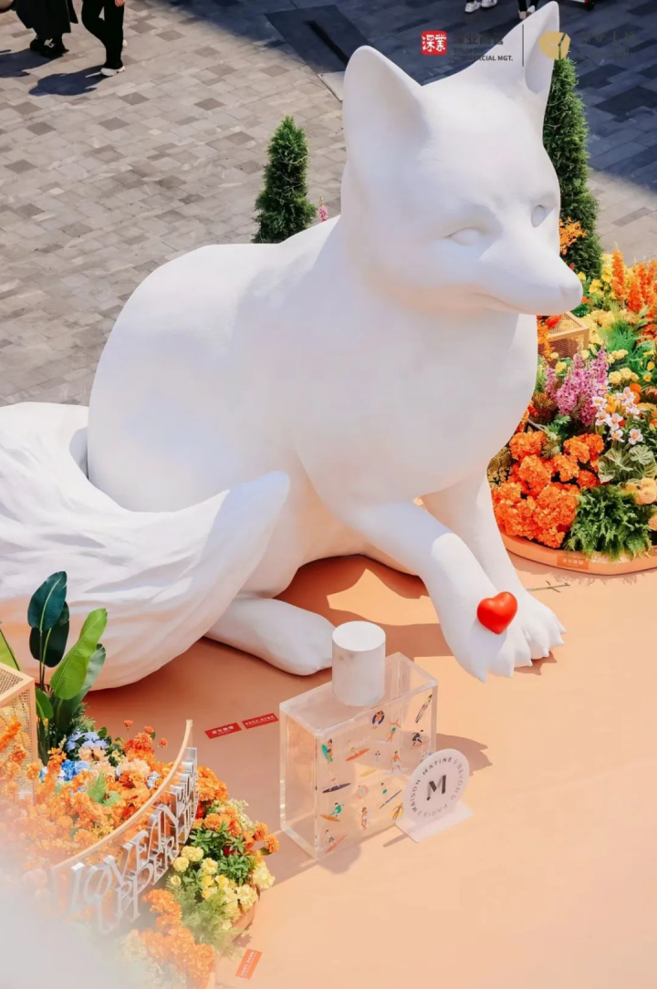 以最近“变红”的深圳深圳上城为例。除了优越的地理位置和“公园经济”的理念定位外,深圳上城还融合了市政公园、体育、儿童公园、野外露营、盒型MALL、商业街区等多种业态,一些艺术放松的空间也是其在众多商业中脱颖而出的关键,这也让深圳上城的美陈艺术装置特别出色。