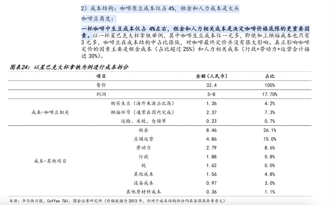 即使在商品原料这一项中,咖啡豆带来的变化也不像生豆期货涨价的消息那样恐怖。
