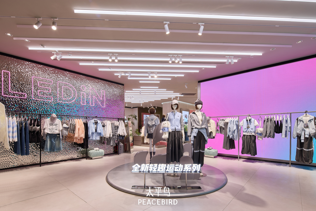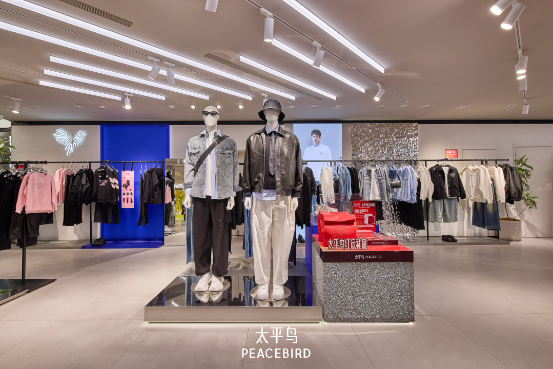 自2024年5月首家品牌旗舰店开业以来,太平鸟分别布局了宁波、武汉、长春、杭州、深圳、重庆等地的“黄金地标”线下零售体验,打造了8座千平旗舰标杆,依托数字光影技术与无界空间设计重构人与货场的关系,每月平均销售额突破500万元,树立了体验型零售时代转型样本。