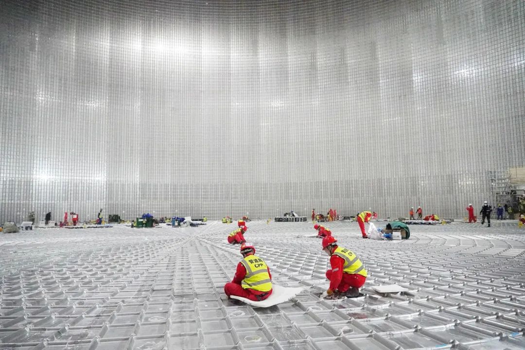 开工前,技术人员会对整个内罐进行激光扫描划线,输入计算机进行分析计算,得到内罐排版图、隔热板、波纹板的分布数据,然后用这些信息进行五接一、四接一的预制生产。预制后,每个波纹板上还有一张贴纸,上面写着它的位置号,相当于一张“身份证”。在传统的LNG储罐建设中,如此精细的管理是不可想象的。