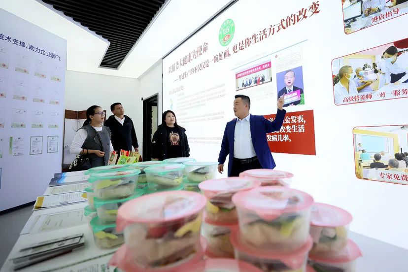 工作人员向客户介绍了河北今旭面业有限公司产品展览中心公司开发的各种产品。图片