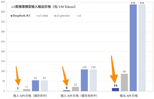 R1 输入价格( 缓存未命中 )每百万 Tokens 才 4 金钱,而实力不如 R1 的 o1-preview ,得要 110 块。