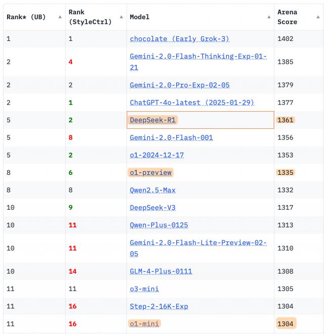 在 AI 试炼场里, DeepSeek R1 评分远高于 OpenAI 的 o1-mini 、 o1-preview 等模型。