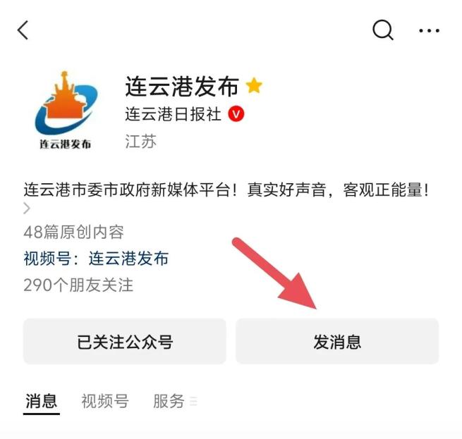 1、关注『连云港发布』微信公众号;