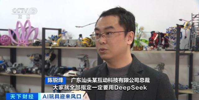 广东汕头互动科技有限公司总裁 陈锐烽:如今这波行情来了,大家都要用了。 DeepSeek,由于其整体逻辑、深入思考,可以更加清晰、简洁。到目前为止,AI 已有数十万元的玩具意向订单。