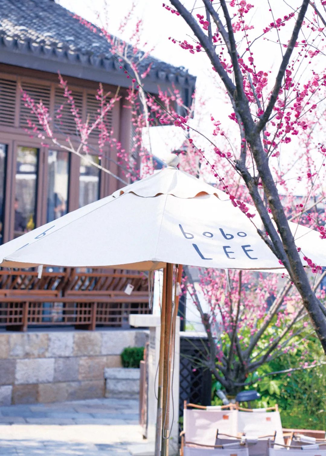 在盘龙世界的十字街上,古韵建筑和时尚景观令人赏心悦目,老字号与时尚品牌相得益彰。河岸上,几颗红梅盛开,花瓣随风飘落,随着水面上的波浪轻轻荡漾。