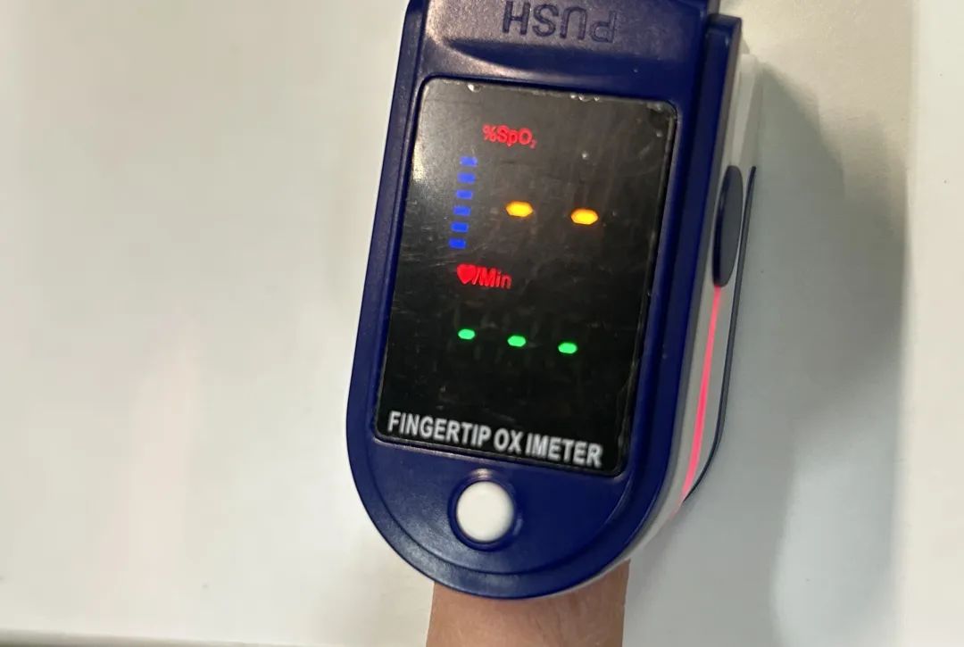 首先测量一个没有做美甲的女同事的食指,血氧饱和度为98%。