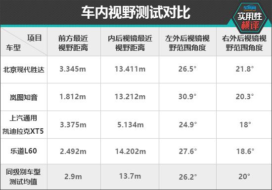 在安全测试中,我们测量和检查了车辆日常使用中最常用的视野范围。在测试过程中,车内所有座椅都调整到最低状态,测量的数据与驾驶员正常使用时存在一些误差,仅供参考。