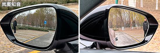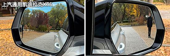 在外后视镜视野测试过程中,虽然四款车都没有使用双曲率镜片,但测试数据有所不同。其中岚图知音性能更好,上下后视镜视野范围视角均优于同级别车型,达到同级别上游水平;上汽通用凯迪拉克 XT5 表现不佳,上下后视镜视野范围视角均未达到同级车型检测平均水平。
