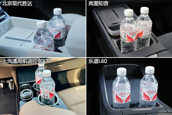 在杯架检测中,北京现代胜达在数量上表现相对出色,共同配置。 10 一个杯架,但是第二排和第三排杯架没有配备限位器。其它三款车型全车均提供 4 一个杯架,上汽通用凯迪拉克 XT5 和乐道 L60 所有杯架都有限位器。