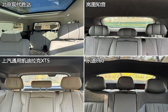 在汽车舒适性方面,除了北京现代胜达。 2 2 2 式 6 除座版车型外,其它三款车型均采用。 5 座椅布局。四款车的每个座椅都配备了头枕,可以给驾驶员和乘客足够的头部支撑,头枕支持上下调节,头枕更舒适。相比之下,上汽通用凯迪拉克 XT5 后排中间头枕尺寸较小,与两侧头枕有明显差异。