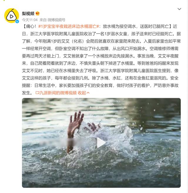 年幼的女孩掉进家里用来接空调漏水的水桶后溺水,送往医院发现脑死亡,没有机会抢救。