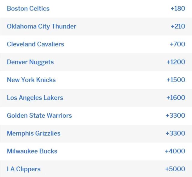 近日 ESPN Futures 更新了本赛季各队的夺冠比例,其中勇士队以 3300 与西部第三灰熊持平的比例升至第七。