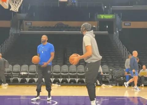 湖人队将在今天的比赛中与独行侠作战,浓眉因伤缺阵。美国记者 Mike Curtis 在湖人队主场晒出戴维斯热身。