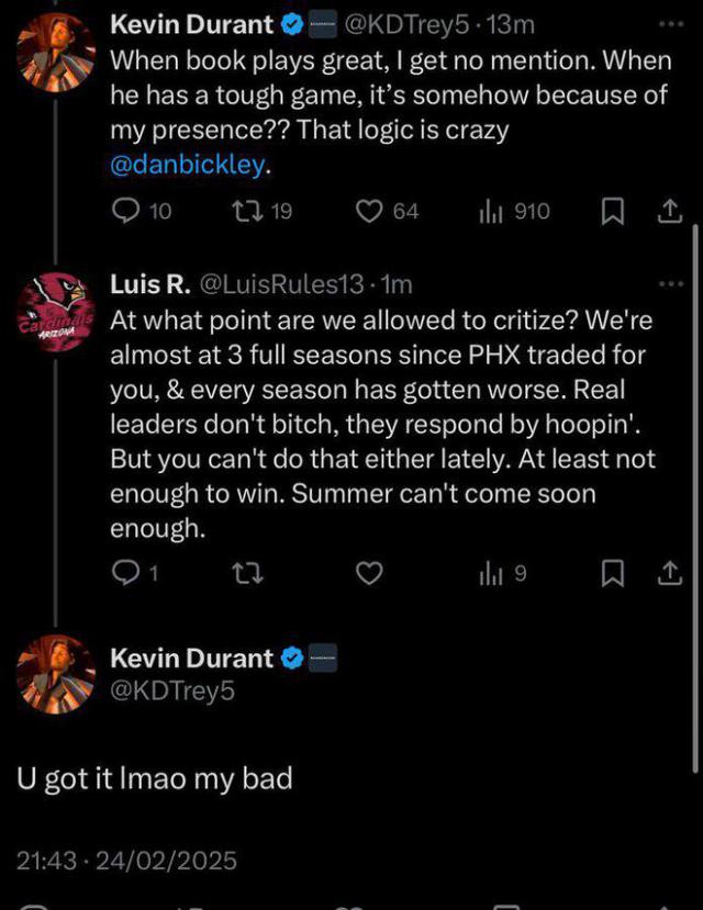 KD网友:布克打得好 没人夸我 他打得不好就怪我??