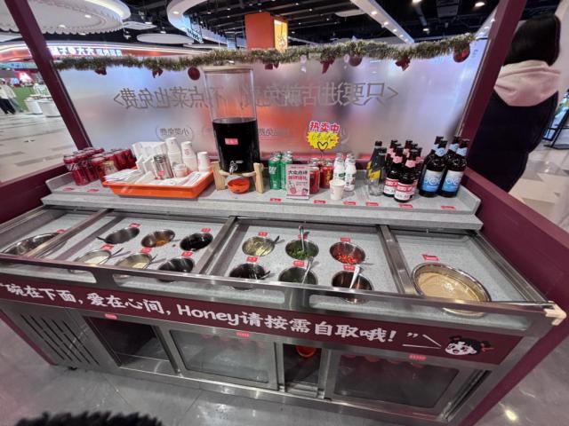 走进商店后,熟悉的海底捞感觉扑面而来。门口有一个免费的小桌子。虽然没有海底捞火锅店丰富,但也提供了蒜泥、香莱、葱花、小米椒等基本食材,海底捞的酸梅汤和冰粉也是免费提供的。
