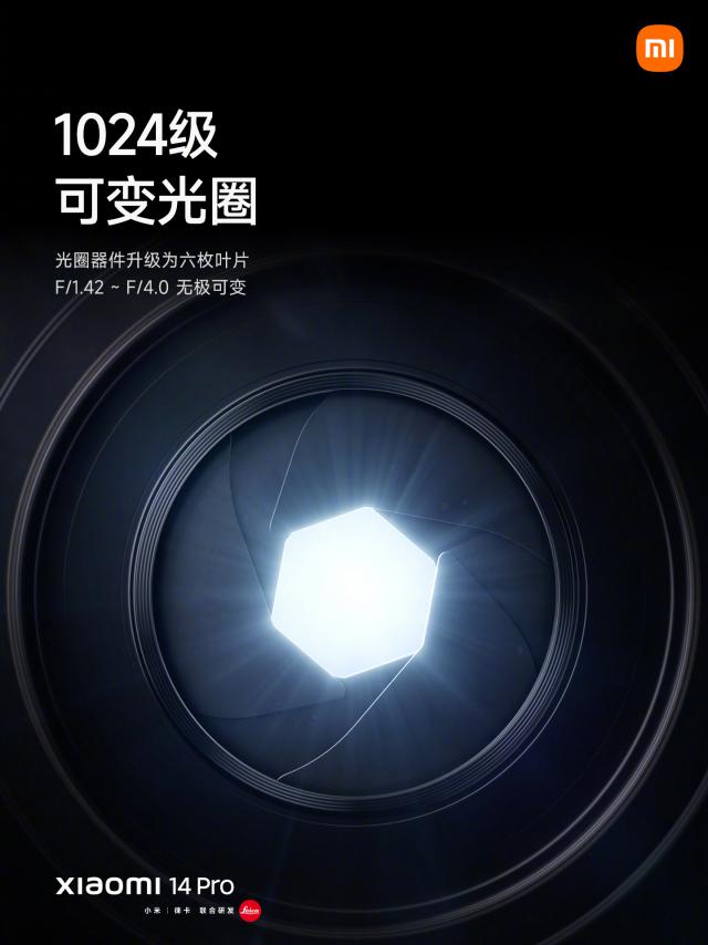 2023 年 10 月,小米 14 Pro 首发了 1024 级可变光圈,可更好地调整虚化、曝光。