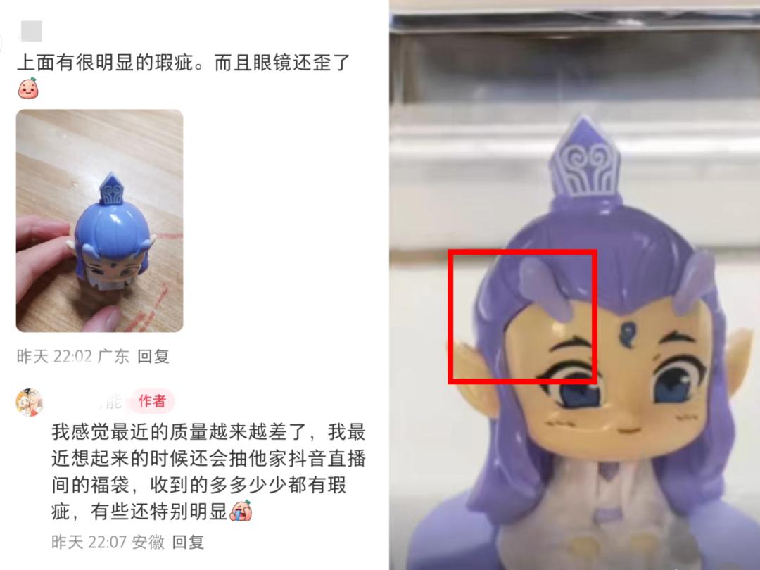 这样,为了保证如期上线,很多衍生品工厂的大宗商品质量检验校准流程也大大降低,部分品牌的最终上线产品存在明显缺陷。在社交媒体平台上,桑尼森迪的盲盒“脸和头发不匹配”,FunCrazy的敖丙勋章出现了非常明显的人物面部抠图缺陷,这些都被消费者吐槽。