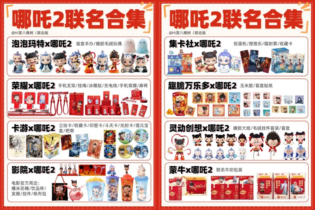 据剁椒Spicy不完全统计,截至目前,已有10个品牌明确发布与《哪吒2》合作,44个实体产品(线上输入法、壁纸等虚拟类)。).与《哪吒1》等爆款影视剧相比,从数量上来说并不少。