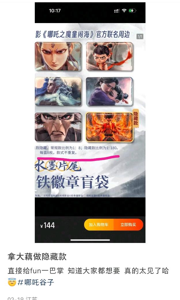 “好看的早缺货,能买的画丑,官方反馈了两个星期,什么都没发生。现在我已经进入同人谷了。又快又便宜。我不香吗?”《哪吒2》的粉丝雄蕊告诉剁椒Spicy。