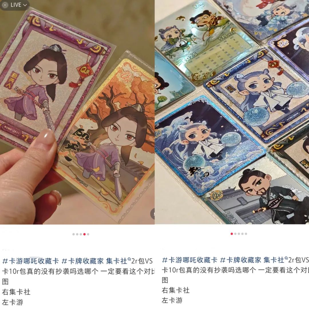 剁椒Spicy还发现,《哪吒2》中大量的2D产品素材图包趋同较高,尤其是在卡圈。具有讽刺意味的是,由于角色素材的高度重叠,一些非卡圈的客户甚至质疑哪吒2的收藏卡是否是另一家的盗版抄袭品。
