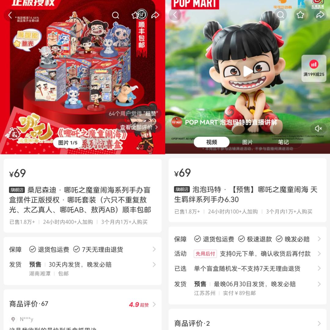 目前从光源发布的衍生合作来看,实用商品的速度和类型还没有满足用户的需求,导致大量“误以盗版为原创”的群体。各大电商平台销量达到10万 冰箱贴纸、练习本、钥匙扣、哪吒t恤等产品,以及直接盗印官方衍生品的假货,也在蚕食对“原IP”不敏感的普通客户。