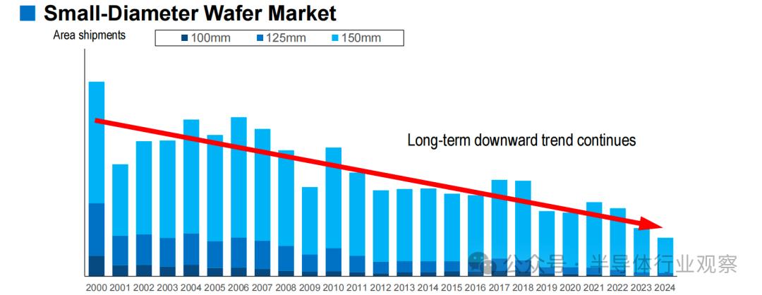100mm、125mm、直径为150mm的晶圆需求呈下降趋势(来源:SUMCO)