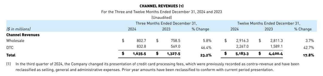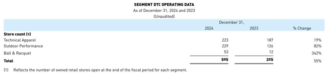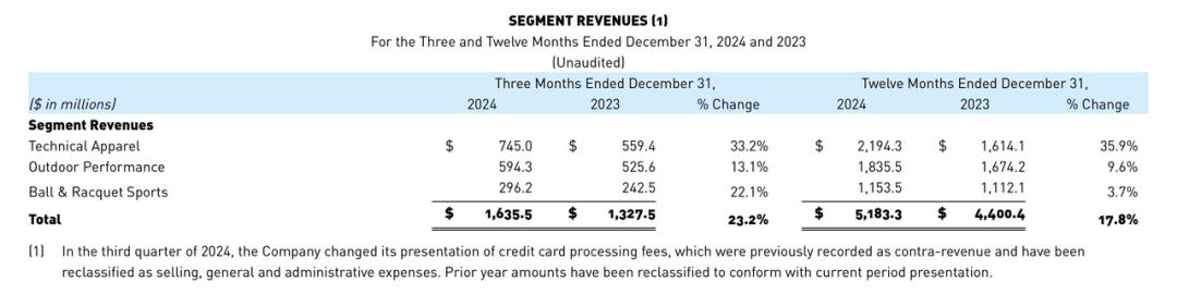 在这些品牌中,户外功能服装包括Arc'Teryx始祖鸟和Peakk 2024年,Performance壁克峰的销售额增长了36%,达到21.94亿美元,按固定汇率增长了38%。