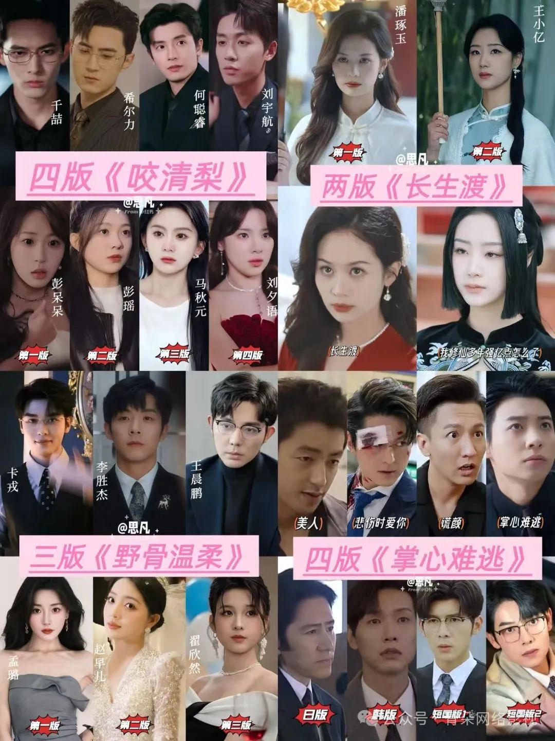 第五版《太野之庭霜》是一个非常渴望的版本,呈现了很多大规模的镜头;第六版《太子爷他太野》最受欢迎,饰演《太子爷》的男主凭借这部剧被提升为头部短剧演员;第七版《深情深沉相思》剧情最完整;第八版《永远不要忘记爱情》有很多吻戏和真亲,细节极佳。