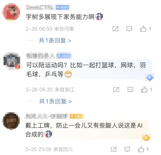 不少网友在震惊之余也开始提起了要求,诸如做家务、陪伴运动等。而有细心的网友则注意到了这个机器人戴着工牌,猜测是为了防止别人说视频是AI合成的。