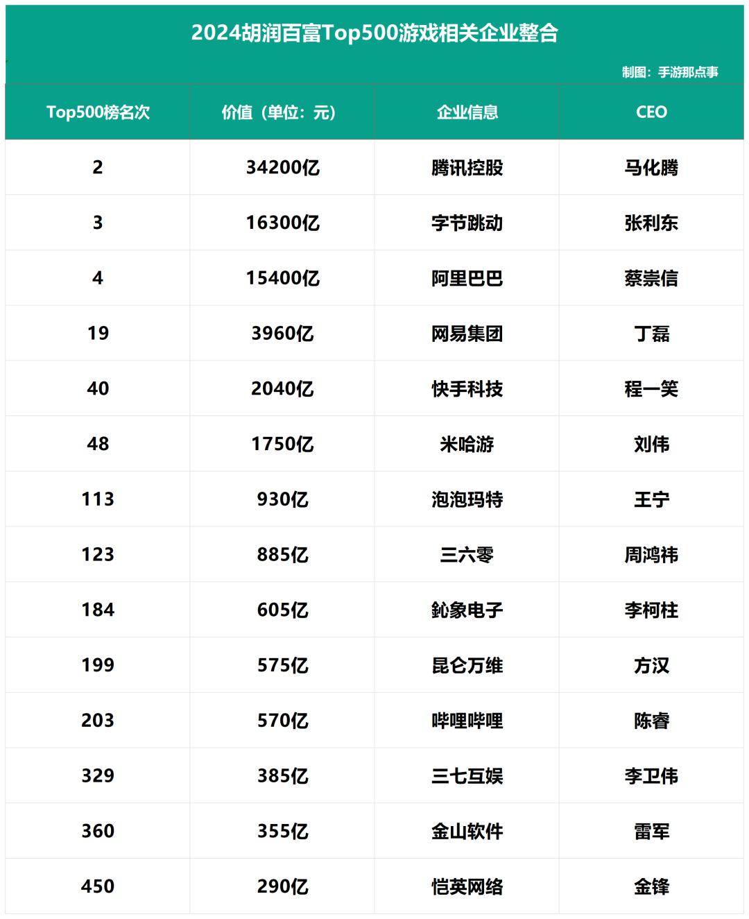 25日,胡润百富发布了2024年中国企业500强榜单,并按照各企业的价值进行排名。 其中,涉及游戏业务的企业共有14家上榜, 甚至还有只依赖游戏业务,位于前排的游戏企业。