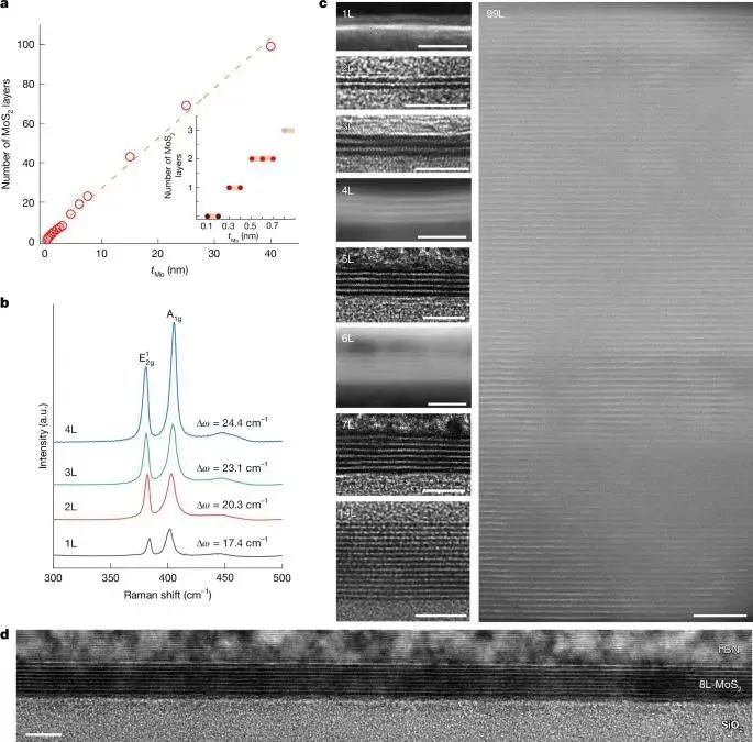 图3: MoS2 "hypotaxy外延生长中的层数可控性