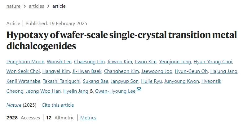 过渡元素二硫化物(TMDs)通过化学气相沉积(CVD)外延生长于晶体基底。但是,这种方法需要将生长后的材料转移到目标基础上,使得厚度控制和可扩展性难以实现。Gwan,首尔大学-Hyoung “Lee团队”提出了一个名字。hypotaxy”(“hypo“意思是往下,”taxy“指排列)的创新方法旨在解决二维过渡元素硫族化合物硫族化合物的传统外延生长问题(TMDs)衬底选择、厚度控制和晶圆级单晶生成的局限性。与现有技术(如蓝宝石上延伸或金衬底模板法)相比,hypotaxy解决了传统方法对单晶衬底的依赖和转移过程的复杂性,结合低温、高均匀性和可扩展性优势,为TMDs在集成电路和异质结器件中的实际应用提供了新的途径。这项研究的结果是“Hypotaxy of wafer-scale single-crystal transition metal dichalcogenides“问题发表在Nature上。