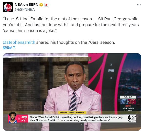记者还提到:“事实上,费城管理层找不到拒绝摆烂的理由,放弃本赛季剩下的比赛几乎成了定局。”到目前为止,由恩比德、乔治和马克西组成的费城三巨头正式宣布失败。核心原因是恩比德的膝盖。