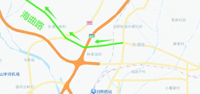 日兰高速日照方向车辆通过日照北收费站到达日照;菏泽方向车辆可以选择海曲路(S313)、日兰高速绕道的西湖收费站。