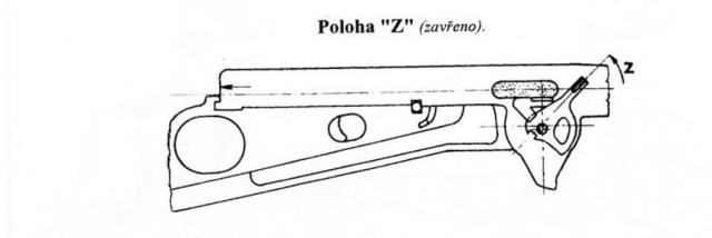 在 Z 位置时,枪机向后移动,与枪托部分连接。O 在位置上,枪机向前移动,可打开枪机。U 在位置上,操作杆与轴一起拔出,允许武器完全拆卸。