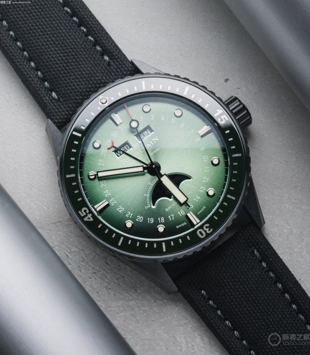 50 全历月相的深潜器 5054,在 2018 2008年第一次推出时,是钢壳(外加金壳)。之后, 2022 每年增加钛壳,但现在 2024 2008年推出了最新的陶瓷壳,并加入了目前最受欢迎的极光绿和冰蓝盘。