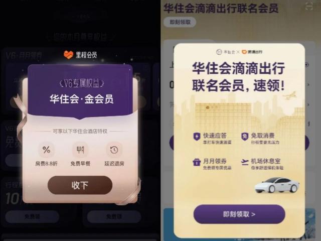 若客户的滴滴里程会员等级较高,也可对应升级其华住会会员等级。V7(限量)、V8 可以领取华住会铂金会员 升房券。